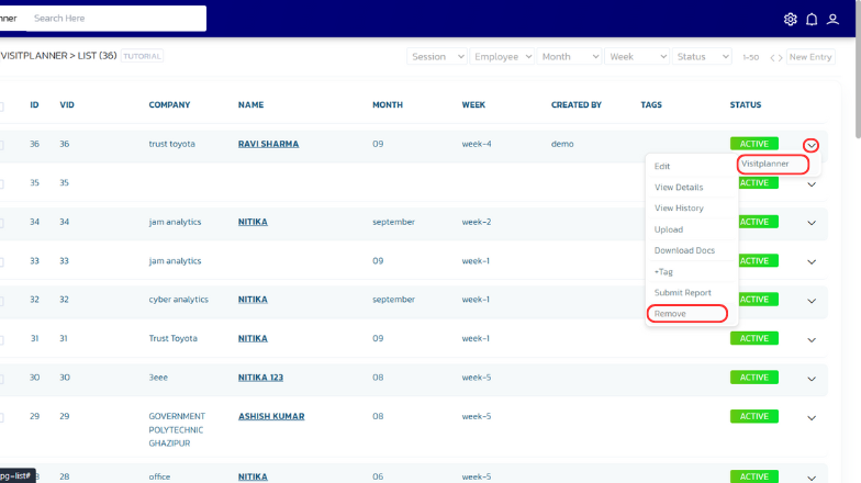 - In the list, find the meeting, and click on the filter arrow located next to it.