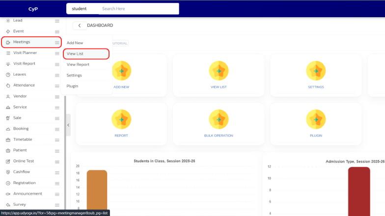 - In the left sidebar menu, go to ‘Meetingmanager > View List’.