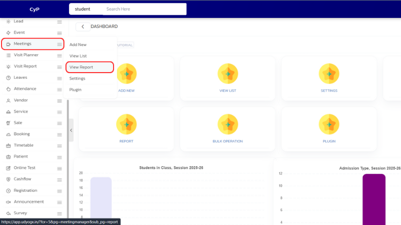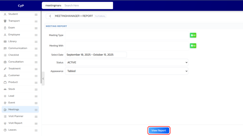 - In the left sidebar menu, go to ‘Meetingmanager > View Report’.