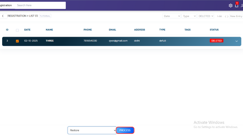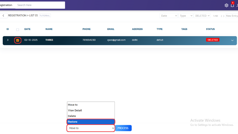 8. Select the “Restore” option and hit “Proceed” to restore the student’s entry.